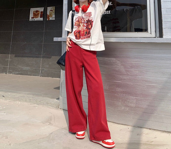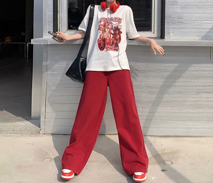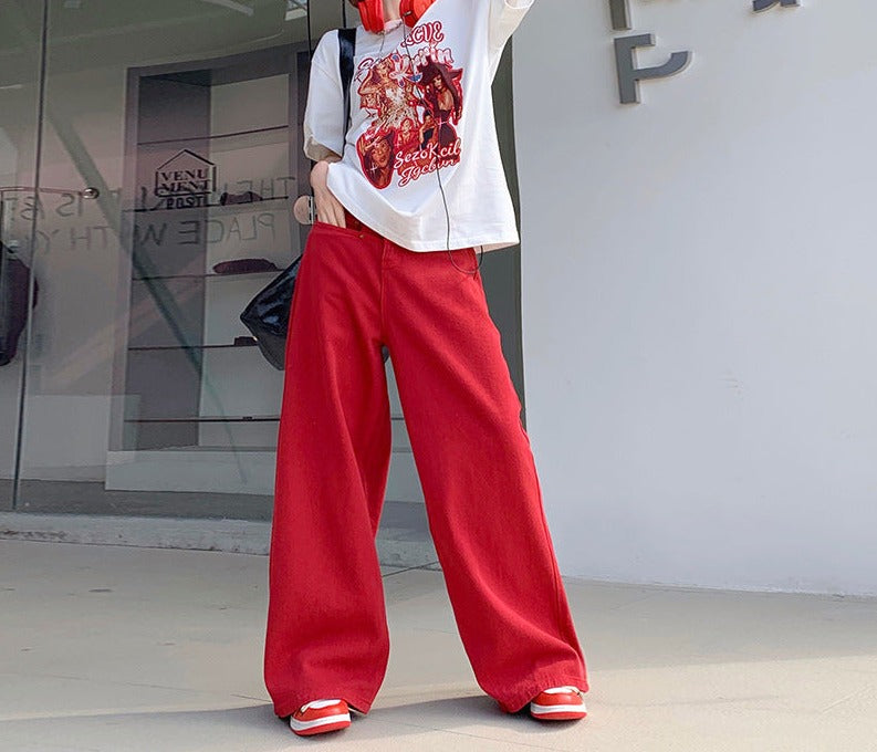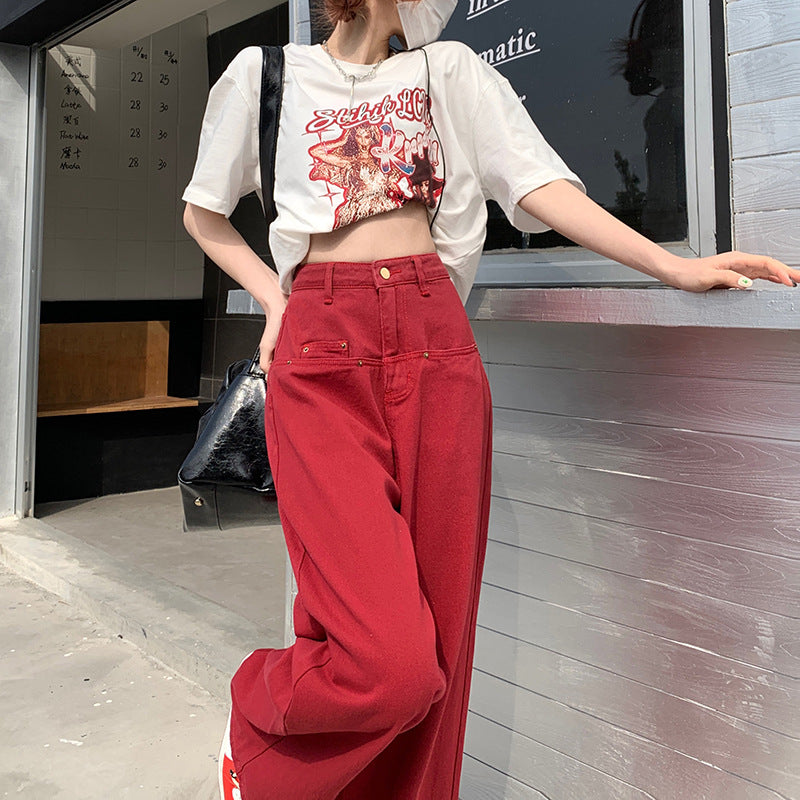 • Vintage Jeans Women's Summer High Waist Loose Personality Wide Leg Trousers